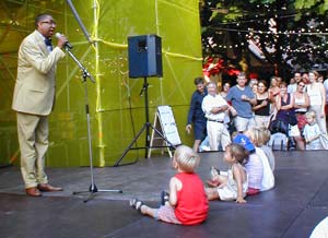 In verband maar met de warmte werd de opening verplaatst naar buiten. Burgemeester Rombouts sprak mooie woorden en debuterend festivaldirecteur Geert Overdam was wat zenuwachtig.