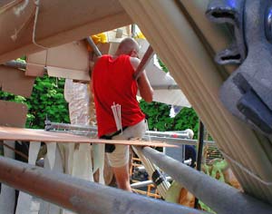 David Bade heeft een sculptuur van 20 meter lang en 20 meter hoog gebouwd. Hij werd daarbij geholpen door acht andere kunstenaars en talloze vrijwilligers: kinderen, geestelijk gehandicapten, vrijgezellenavonden en festivalbezoekers zeulden hout, gaas, cement, pvc buizen, pur- en piepschuim naar de zuidoosthoek van de Corridor. Daar verrees in tien dagen het bouwwerk, dat de ingang van het Dommelsch Muziekcafé aardig wist te blokkeren.