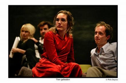 En ik heb door Johan Simons ook ontdekt dat het in ieder geval niet de lengte is waardoor je het gevoel krijgt dat een voorstelling te lang duurt. Want Tien Geboden (ik zag de twee delen achter elkaar als marathon) duurde vijf uur en had van mij zelfs nog wel even door mogen gaan. Terwijl van de tweeënhalf uur Kasimir en Karoline door NTGent en De Veenfabriek (van dezelfde Johan Simons dus) er minstens een half uur uit zou mogen.